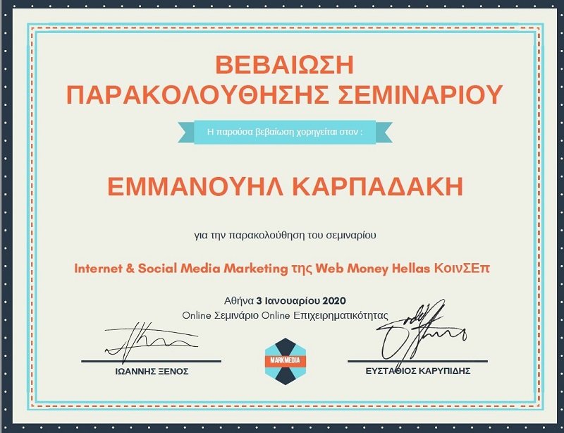Την βεβαίωση θα παραλάβετε στο email σας, μετά το πέρας του σεμιναρίου